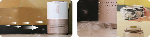 Fino a 320-540 ft² (30-50m²) di copertura, cattura efficacemente i peli di animali domestici e purifica l'aria.