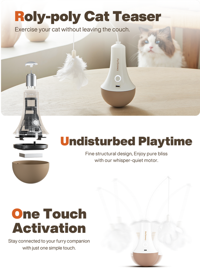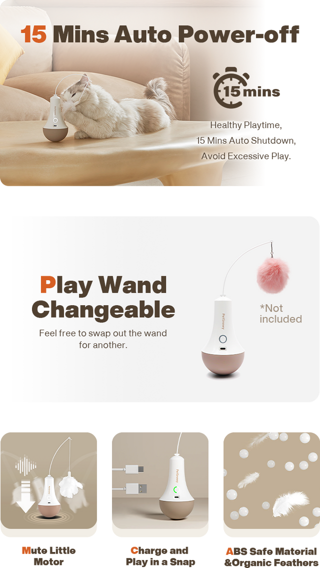 Dieses interaktive Katzenspielzeug verfügt über einen ultraleisen Motor, der dafür sorgt, dass Ihr Katzenfreund ganz ohne Brummgeräusche spielen kann. So wird Ihr Kätzchen begleitet und Ihre Arbeit nicht unterbrochen, selbst an arbeitsreichen Tagen.